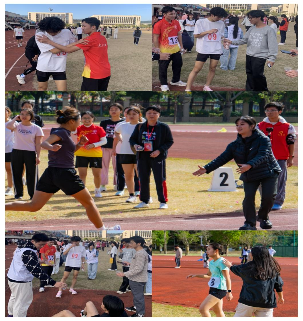 赛场内外,校区领导、老师与学生志愿者团队紧密协作,为选手提供了全方位的支持与鼓励,这份贯穿始终的“温暖底色”尤为动人。从赛前教练员悉心为运动员们制定训练计划、准备补给物资,到赛场上老师们高举喇叭呐喊助威,再到选手冲线后第一时间递上的拥抱与搀扶,或是运动员发挥失常后及时的疏导、复盘与暖心鼓励,无不体现着师长们的“贴身心系”。正是这份深厚的关怀与强大的后勤保障,共同助力校区实现了竞赛成绩与精神文明的”双丰收“。
