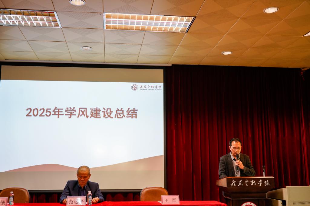 会上,王军老师作2025年学风建设工作总结报告。他指出,2025年作为学校优良学风建设年和本科教育教学审核评估关键之年,校区始终以习近平新时代中国特色社会主义思想为指导,紧扣立德树人根本任务,推动学风建设各项工作落地见效。